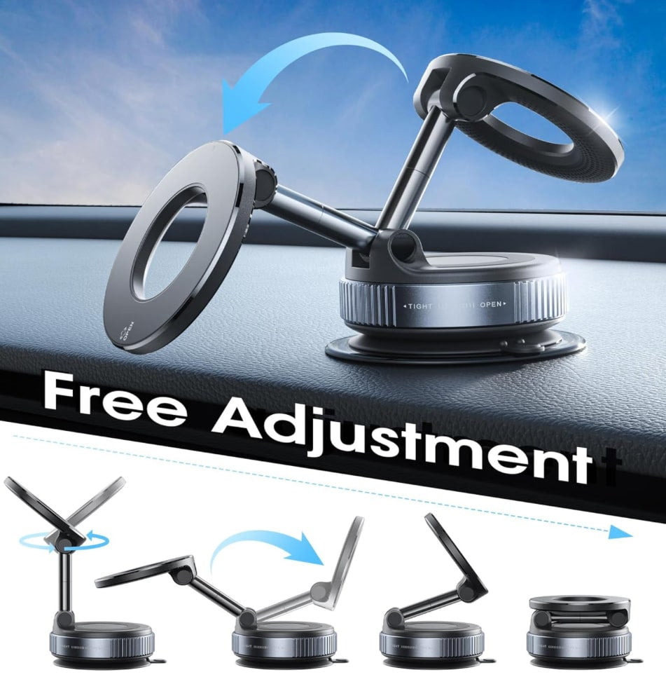 With 360° and 180° rotation, you can set the perfect angle anytime. The built-in magnet ensures your phone stays secure, even on bumpy roads.